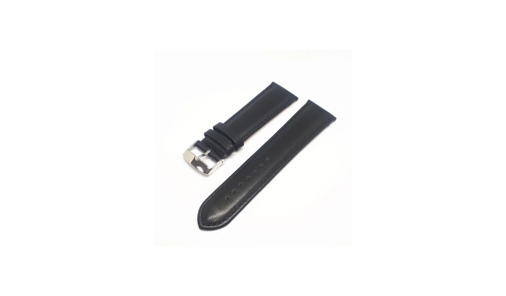 22mm Siyah Renk Desensiz Hakiki Deri Saat Kordonu